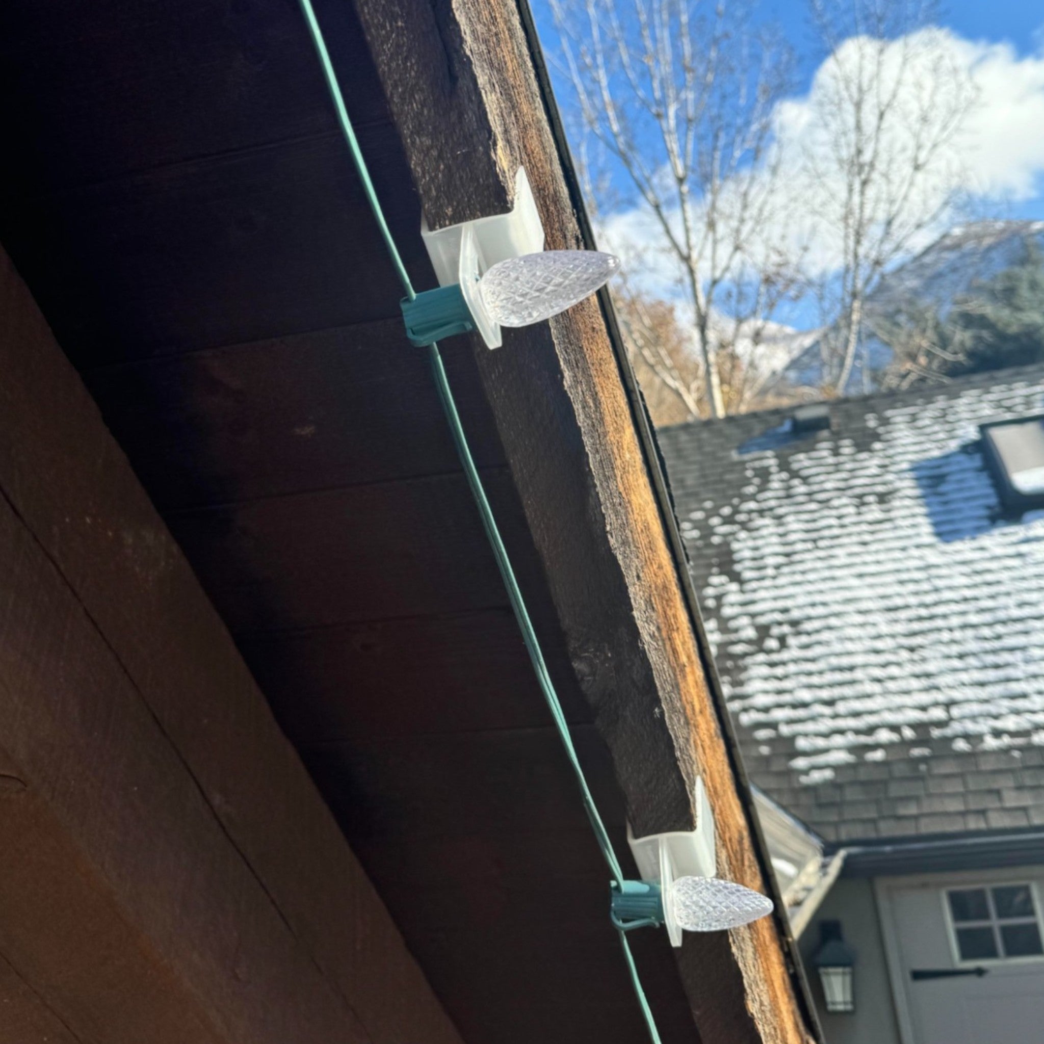 This versatile clip is designed for professional holiday lighting displays, making it easy to install C9 or C7 bulbs on extended fascia boards, roof tiles, or other architectural elements. Its sturdy, transparent design provides a discreet yet secure attachment point for your holiday lights.