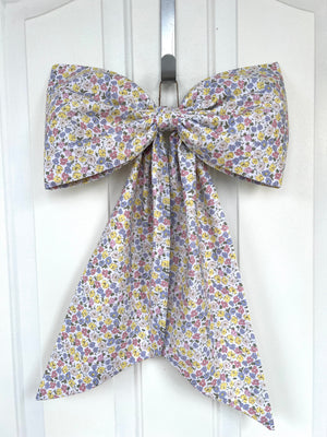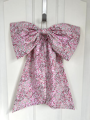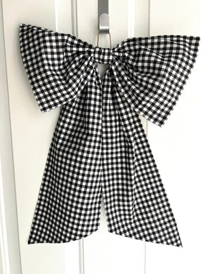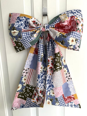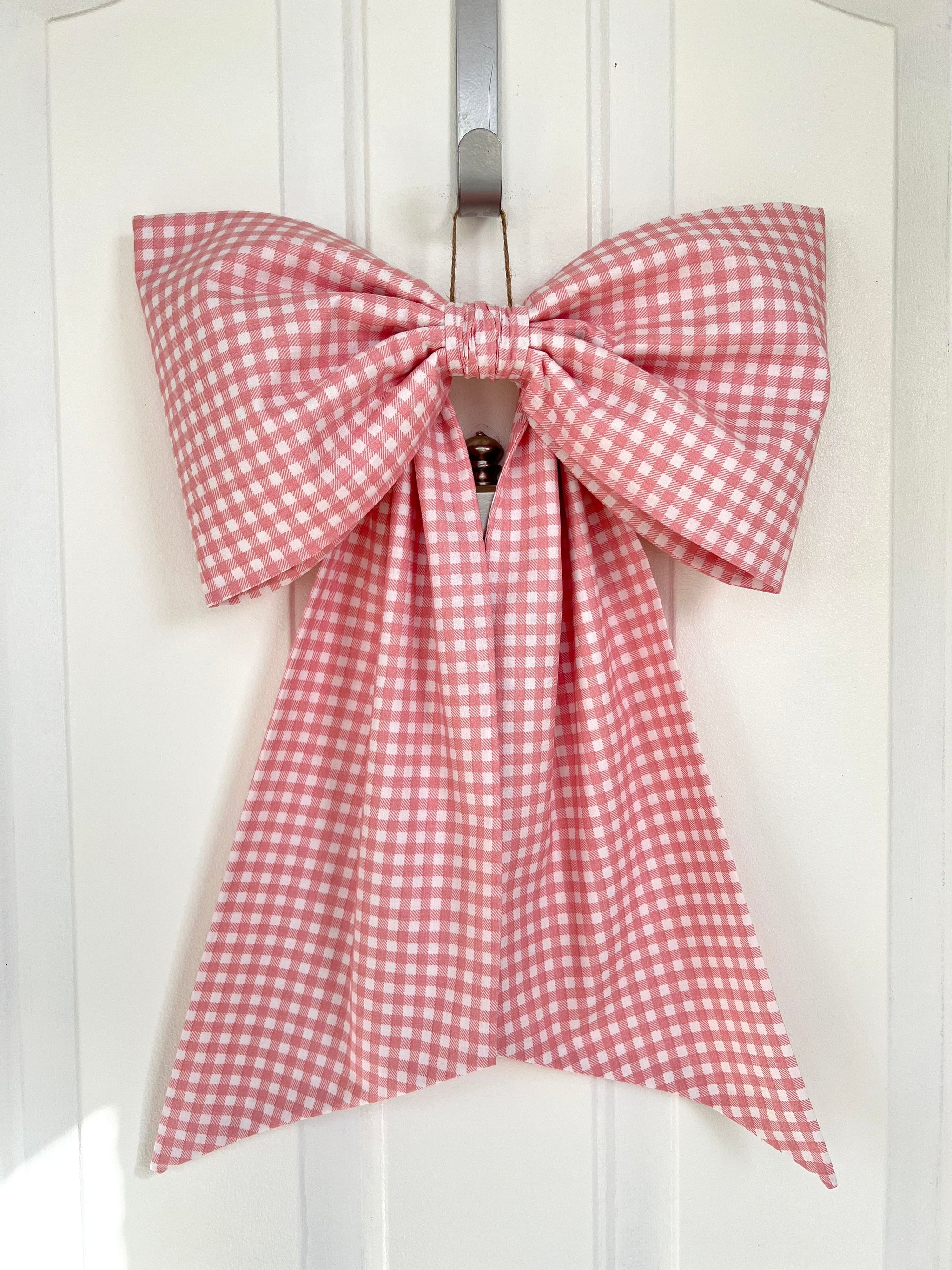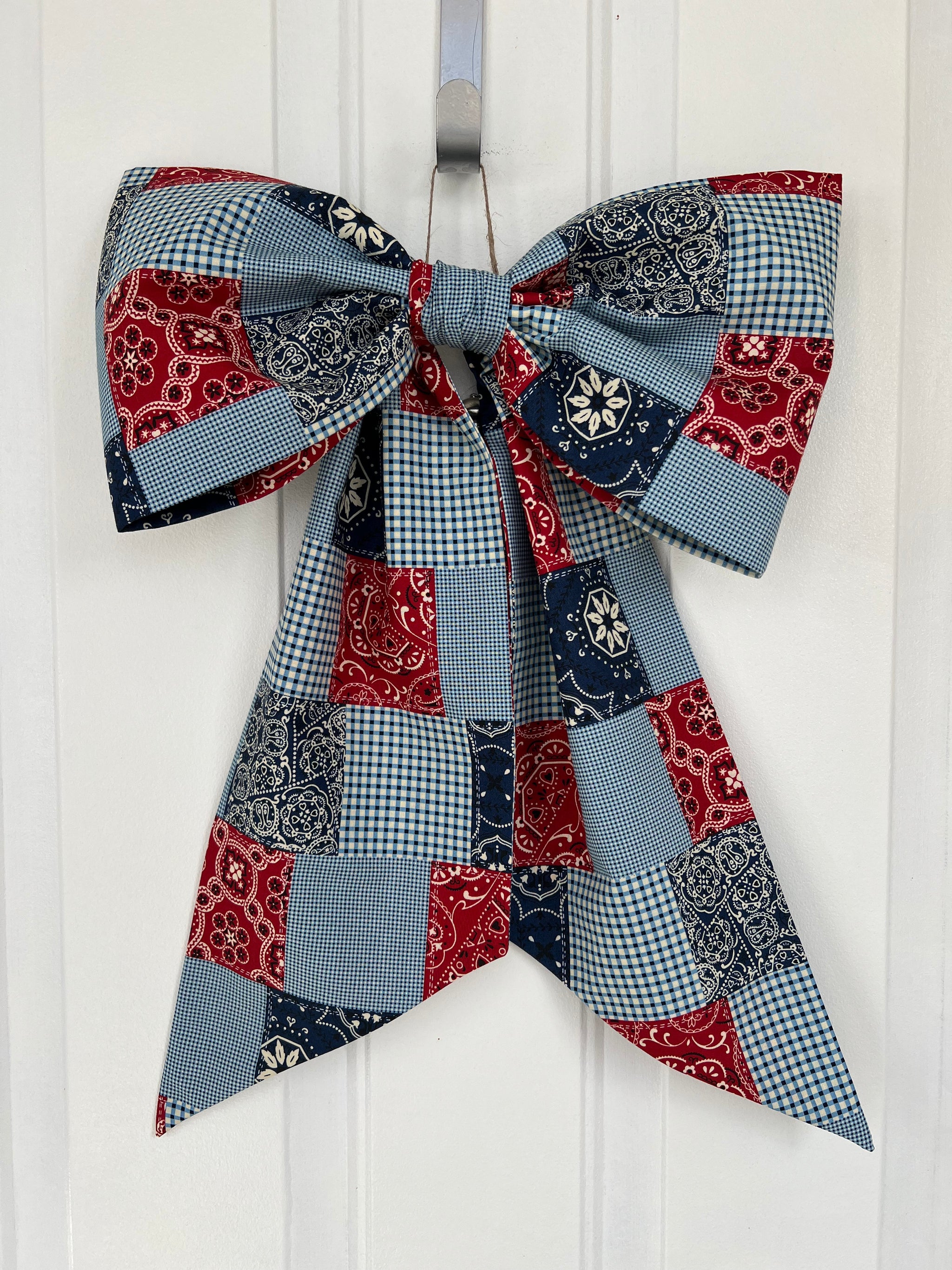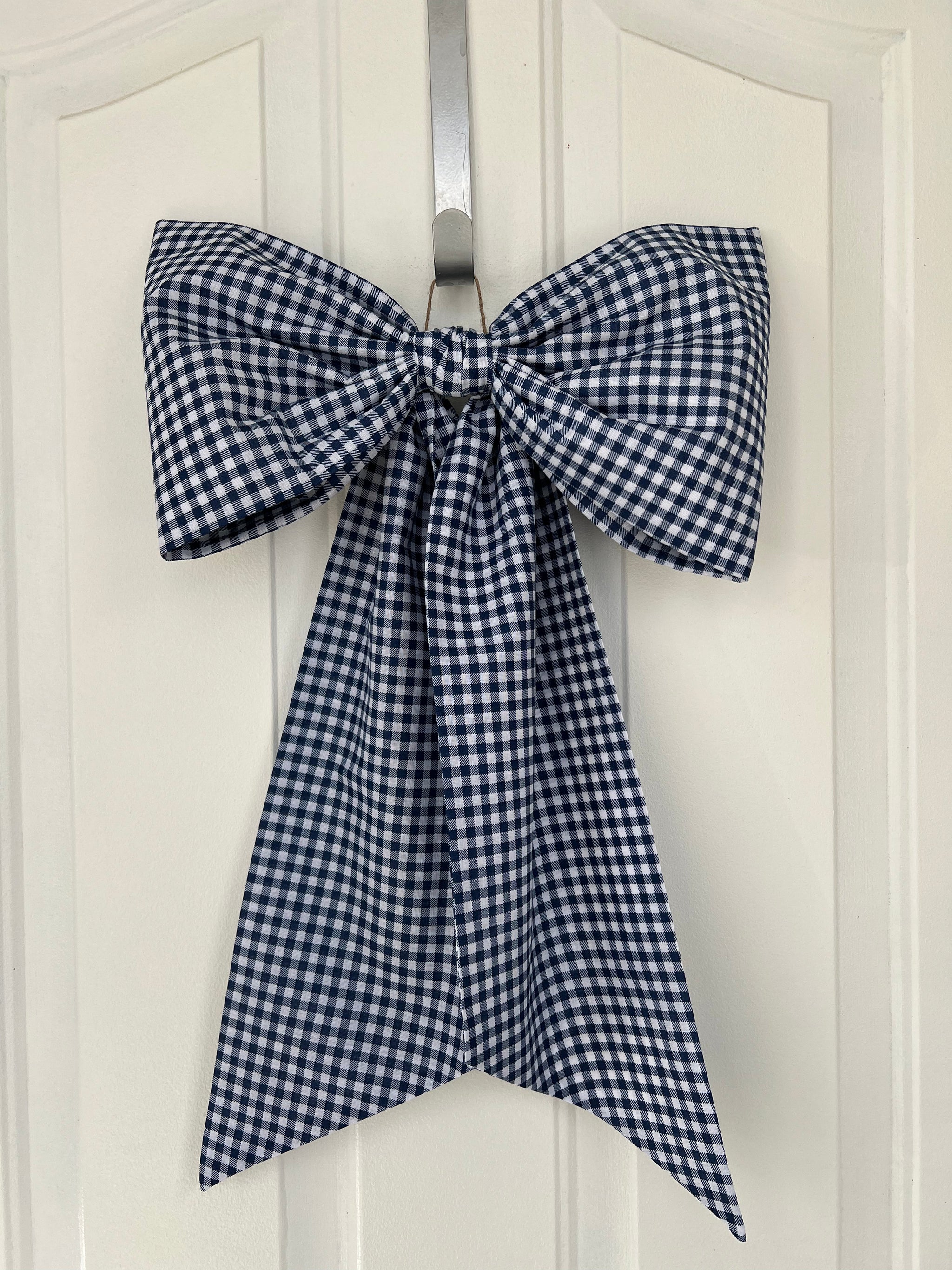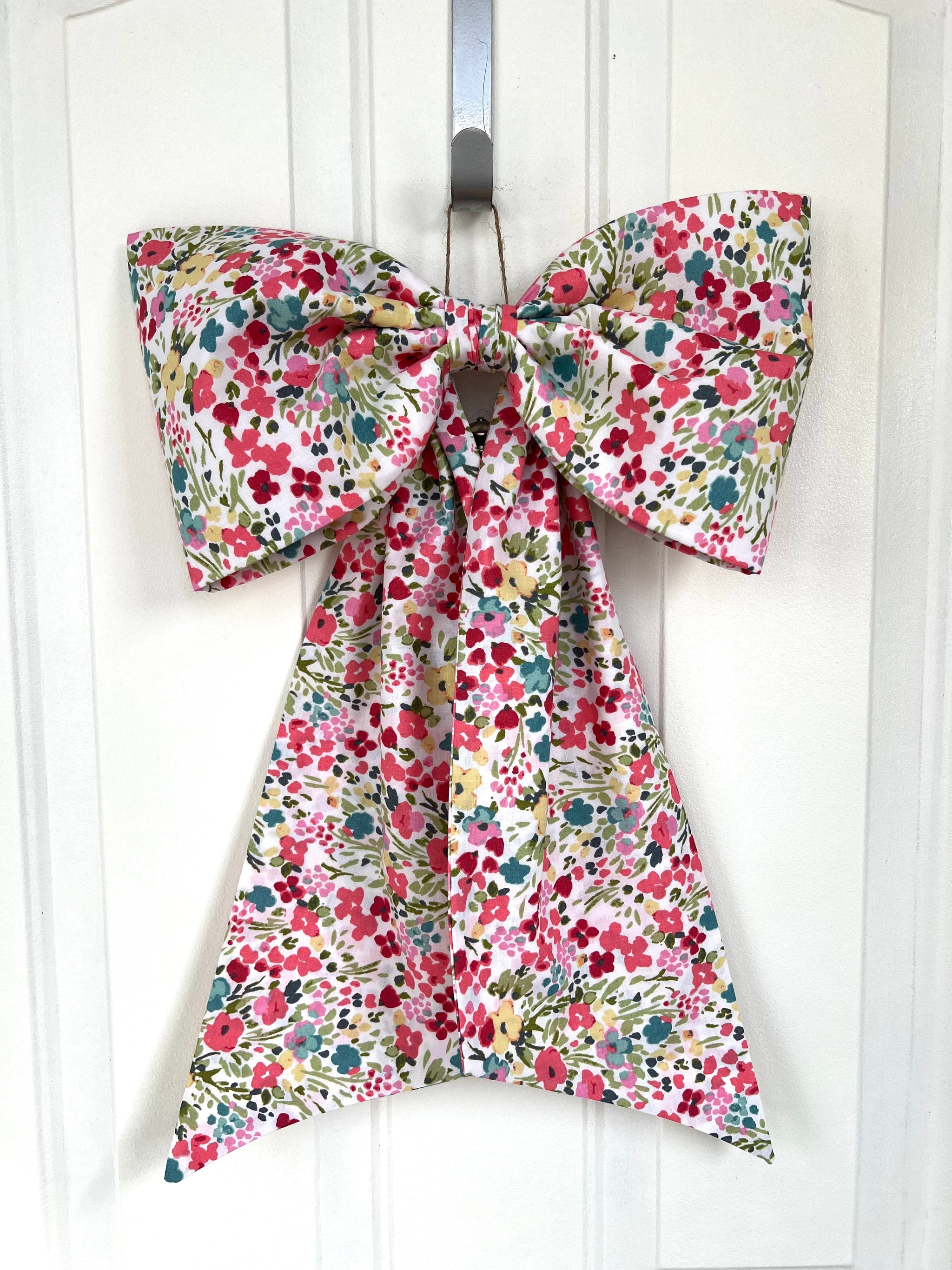 Enhance your decor with our 18'' homemade cloth bow. Available in multiple colors and patterns.