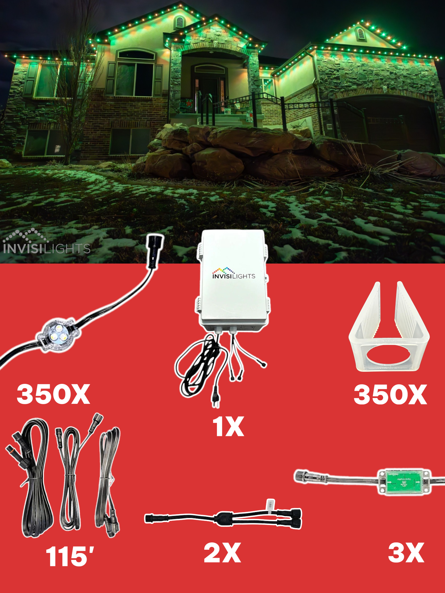 The 350' Invisi-Clips Kit is an all-inclusive package designed to give installers everything needed for a fast, professional 350' holiday smart light installation.